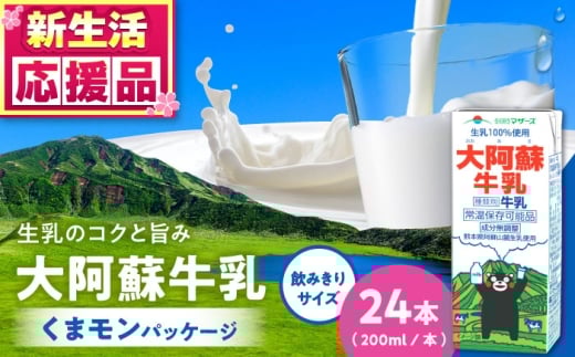 - 大阿蘇牛乳 ロングライフ くまモンラベル 200ml 24本(12本入り×2ケース) 4.8L / 牛乳 生乳 熊本 大阿蘇牛乳 くまモン ミルク 成分無調整牛乳 長期保存 常温保存 送料無料【合同会社 福福堂】[AYAC021]