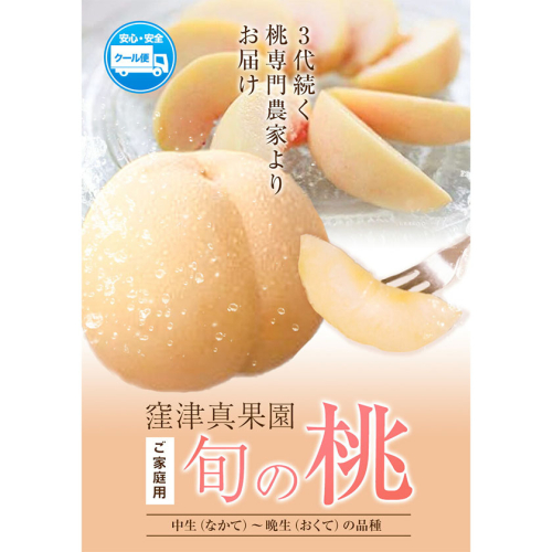 【2026年先行予約】ご家庭用 旬の桃 (なかて~おくての品種) 約750g (3玉前後) または 約1.5kg (4~6玉) または 約2kg (5~8玉) 窪津真果園【配送不可地域あり】《2026年7月中旬-9月中旬頃出荷》岡山県 浅口市 フルーツ モモ 果物 青果 旬 白桃 国産 岡山県産