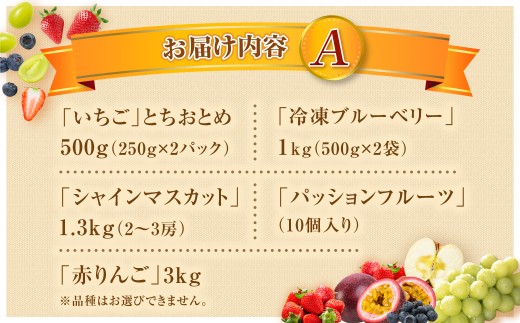- \ 旬の時期お届け!【全5回】 2026年1月スタート / フルーツ定期便A いちご 苺 冷凍 ブルーベリー ぶどう シャインマスカット パッションフルーツ りんご 人気 福島県 田村市