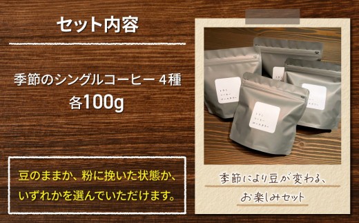 粉に挽く:季節のシングルコーヒー4種セット【トウミコーヒーロースタリー】
