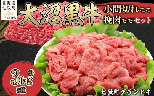 大沼黒牛小間切れ(モモ1kg)・挽肉2kgセット 【ふるさと納税 人気 おすすめ ランキング 北海道ブランド牛 大沼黒牛 黒毛和牛 冷凍 小間切れ 細切れ モモ ひき肉 挽肉 おいしい 北海道 七飯町】 NAM016