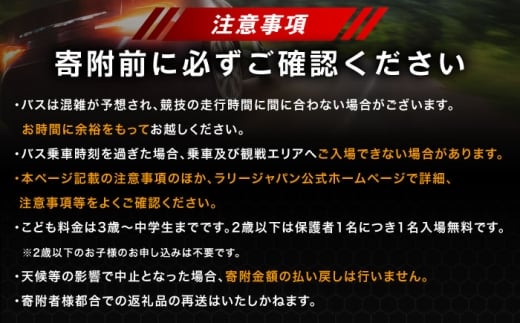 ラリージャパン【恵那SS(山岡観戦エリア)観戦券 P&R(山岡グラウンドほか駐車場)/大人1名 こども1名】5月30日(土) [AUAQ035]