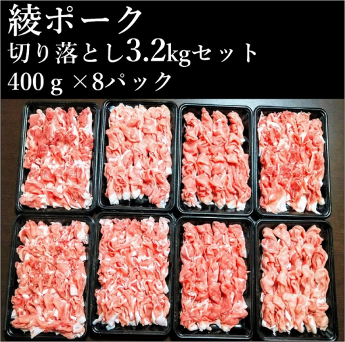 宮崎県産 綾ポーク 豚肉切り落とし 3.2kg (400g×8パック) 綾町産 綾豚 綾ポーク 豚肉 ポーク 豚肉切り落とし 国産 切りおとし肉 小分け 家庭用