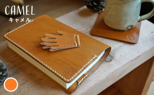 【ネイビー】【手縫いの本革製品】読書のお供セット(文庫本カバー・ブックマーク・コースター) 本 ブックカバー 糸島市 / BLESS [AAA033-4]