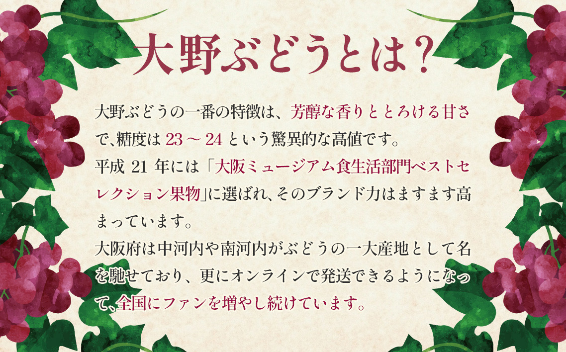 【口コミで広まった格別の甘さ】堀井農園大野ぶどう(デラウェア)1.8kg / 葡萄 ブドウ 高糖度 大阪府 特産品 No.252