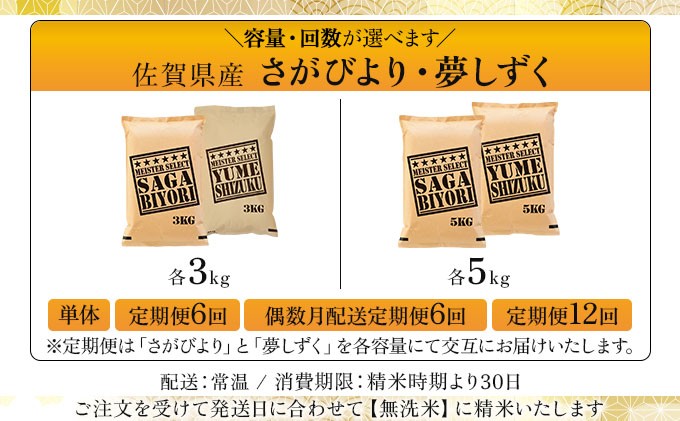 《選べる容量&配送回数》令和7年産 無洗米食べ比べ さがびより&夢しずく 6~10kg《特A評価!》| 単品 定期便 偶数月 米 お米 ごはん 弁当 銘柄米 白米 県産米 佐賀県産 国産米 ブランド米 おにぎり 国産 佐賀県 単一原料米 五つ星お米マイスター