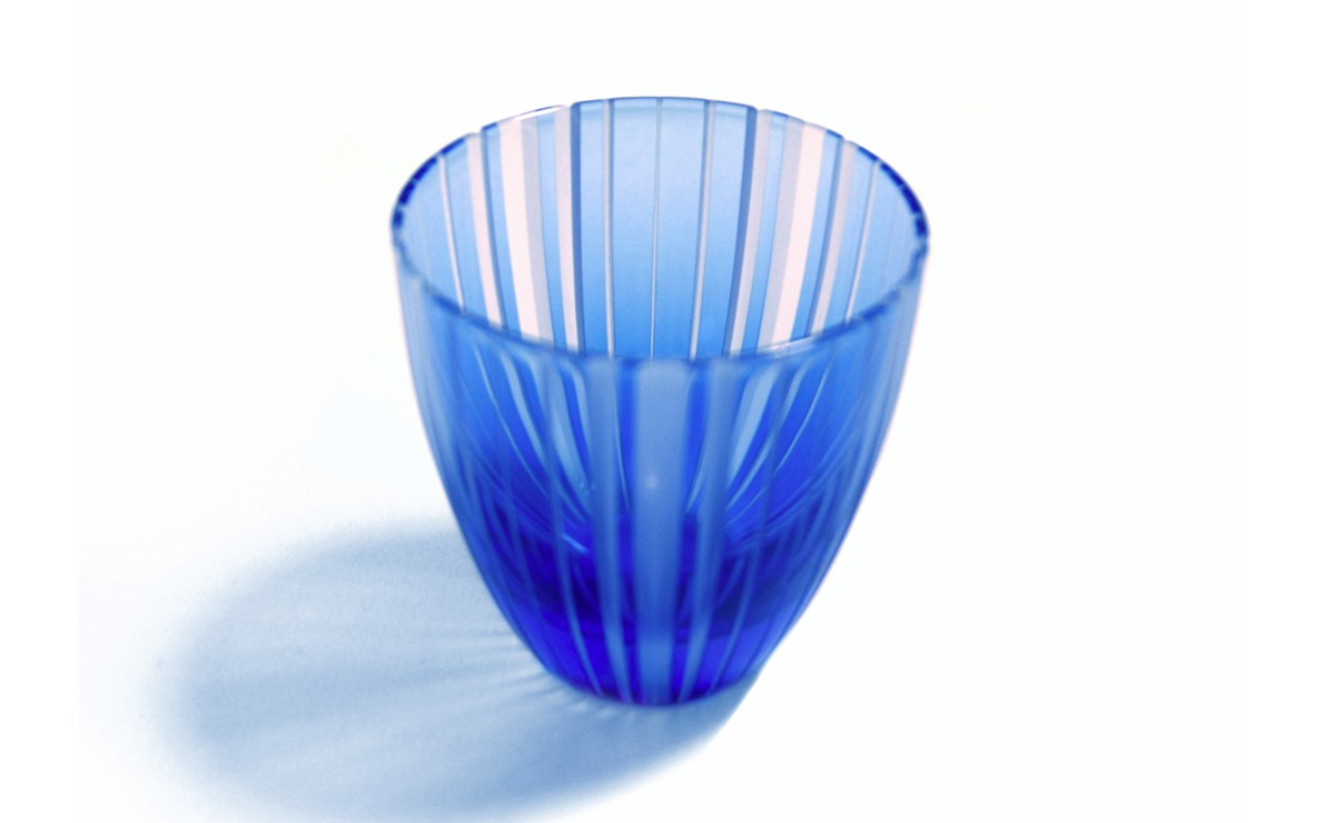 - 浅草切子 KANA KURITA「ぐい呑 滝縞 青藍/金赤<艶消し>」ペアセット 木箱入り| 切子 花切子 切子ガラス ガラス工芸 グラス ガラス コップ 手作り ぐい呑み 家飲み 酒器 ハンドメイド 手作り ギフト 贈答 プレゼント