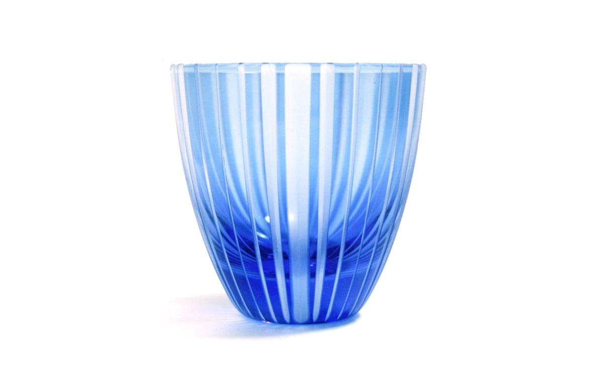 浅草切子 KANA KURITA「ぐい呑 滝縞 青藍/金赤<艶消し>」ペアセット 木箱入り| 切子 花切子 切子ガラス ガラス工芸 グラス ガラス コップ 手作り ぐい呑み 家飲み 酒器 ハンドメイド 手作り ギフト 贈答 プレゼント