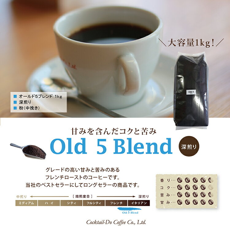 【ふるさと納税】 コーヒー 粉 【1949年創業ロースター】 オールド5ブレンド 1kg [コクテール堂 山梨県 韮崎市 20743529] 珈琲 コーヒー粉 珈琲粉 自家焙煎 ブレンド ブレンドコーヒー ドリンク 飲み物 飲料
