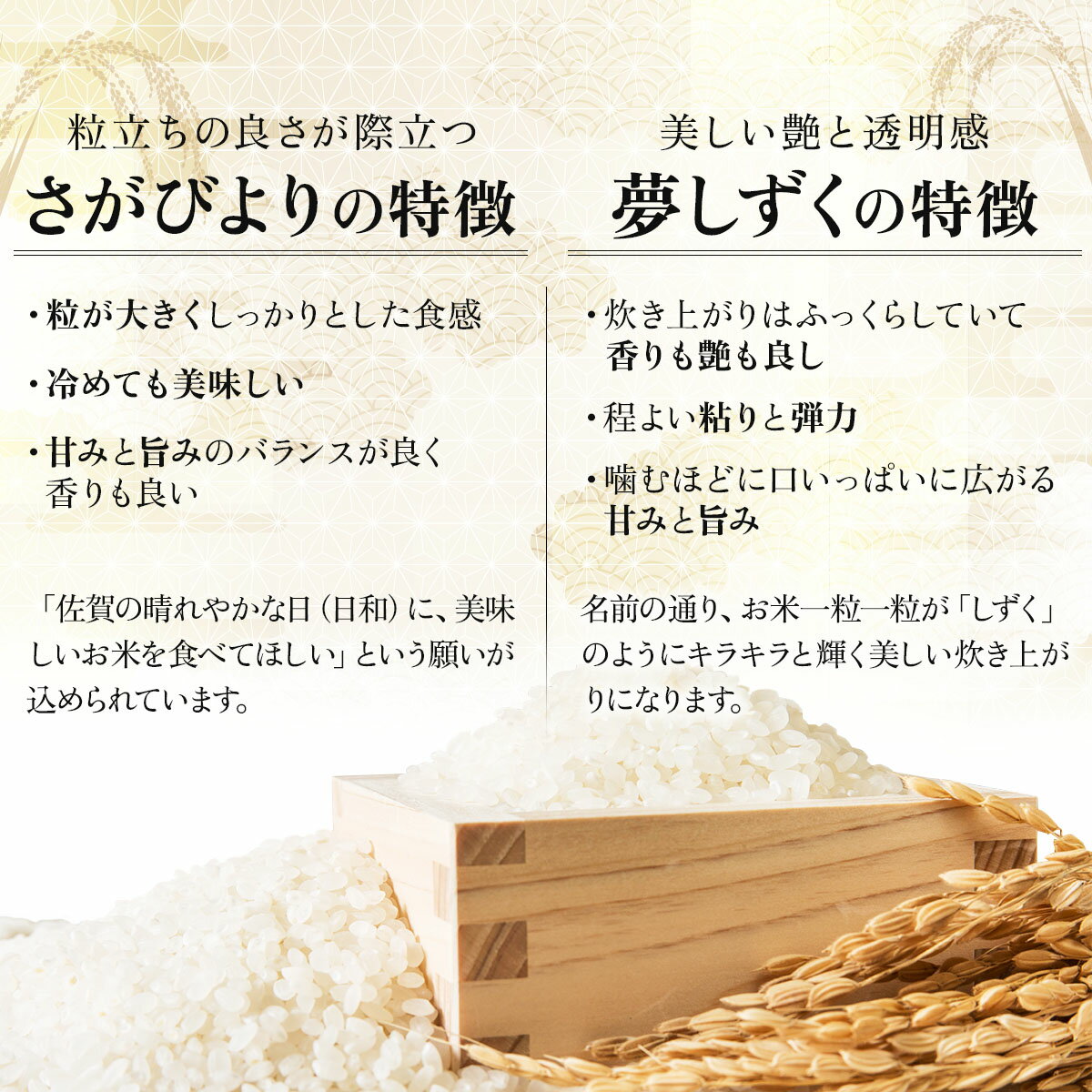 - 【ふるさと納税】《選べる容量&配送回数》令和7年産 白米食べ比べ さがびより&夢しずく 6〜10kg《特A評価!》| 単品 定期便 偶数月 米 お米 ごはん 弁当 銘柄米 白米 県産米 佐賀県産 国産米 ブランド米 おにぎり 国産 佐賀県 単一原料米 五つ星お米マイスター