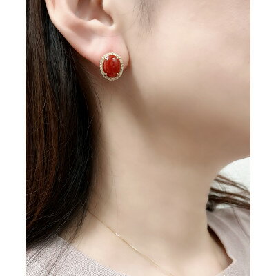 【ふるさと納税】K18イエローゴールド 血赤 珊瑚 オーバル ダイヤ ピアス【PE-3125】【配送不可地域:離島・沖縄県】【1712579】
