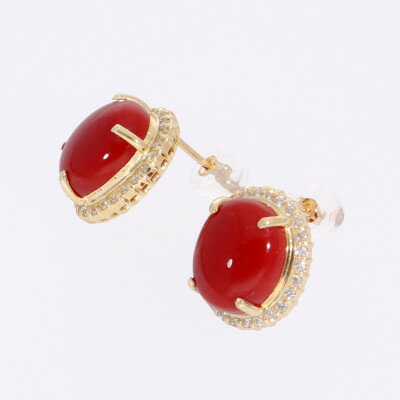 - 【ふるさと納税】K18イエローゴールド 血赤 珊瑚 オーバル ダイヤ ピアス【PE-3125】【配送不可地域:離島・沖縄県】【1712579】