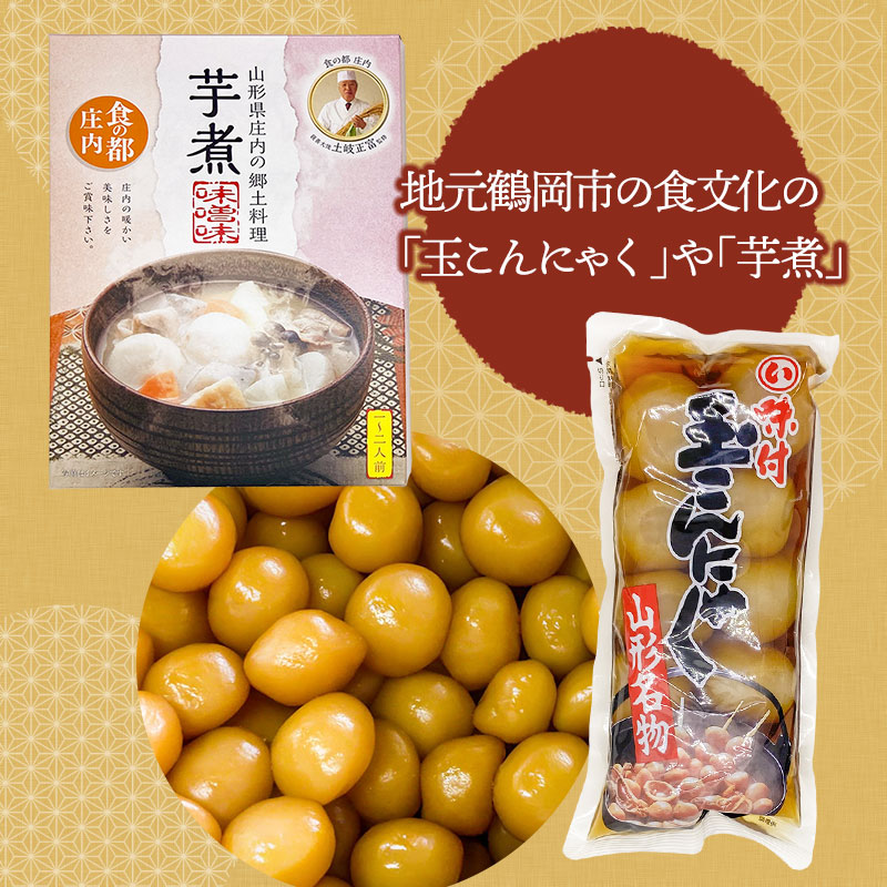 - 【ふるさと納税】 庄内米ふるさとセットA つや姫 2kg・芋煮(味噌味)・玉こんにゃく・琴平荘中華そば(醤油味)・のっけて食べるあつみかぶ・古鏡 庄内観光物産館