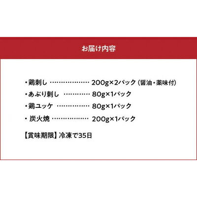 【ふるさと納税】「刺身専用鶏」鶏刺し・あぶり刺し・鶏ユッケ・炭火焼 セット【配送不可地域:離島】【1186070】