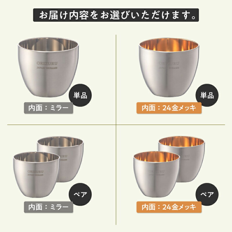 - 【ふるさと納税】 ORIZURU 二重構造 ぐい呑み 選べる 個数 単品 ペア 種類 内面 ミラー仕上げ 24金メッキ ステンレス 二重構造 ぐい飲み お猪口 おちょこ グラス 酒器 日本酒 熱燗 折り鶴 つる ギフト プレゼント 贈り物 日本製 10000円 10000 O・S 新潟県 燕市 燕三条