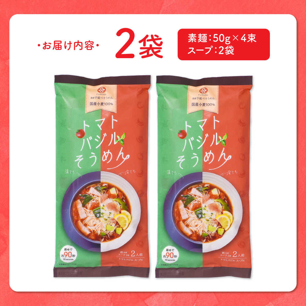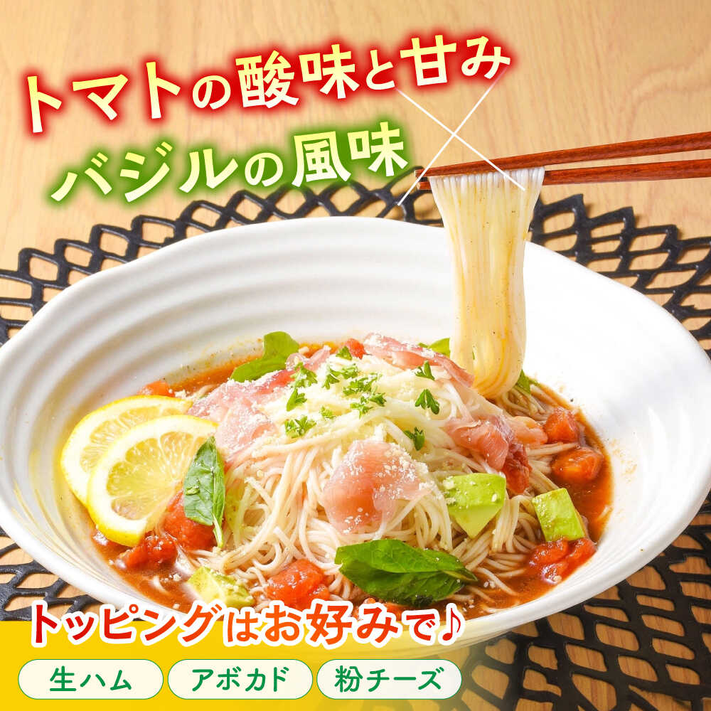 - トマトバジル そうめん (スープ付) 計4食 / そうめん 島原 手延べ 素麺 麺 乾麺 トマト バジル / 南島原市 / ふるせ [SAQ002]