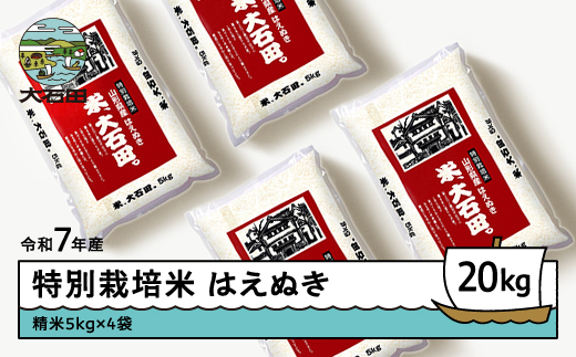 - 米 令和7年産 米 はえぬき 20kg 2026年5月下旬発送 大石田町産 特別栽培米 精米 ※沖縄・離島への配送不可 ja-hasxa20-5s