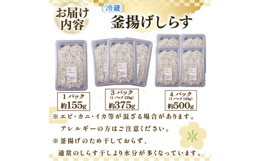 【釜揚げしらす】当日、駿河湾(牧之原市相良沖)で漁獲されたしらすを釜揚げにして、漁獲・加工したその日のうち、当日又は翌日に冷蔵便(ヤマト運輸クール便)にて発送いたします。釜揚げしらす 1パック 計 155g 国産 しらす シラス 魚 魚介 新鮮 釜揚げ かまあげ 釜あげしらす 小分け パック 冷蔵 食品 丼 ご自宅用 家庭用 お手軽 新鮮 お手軽 簡単 贈り物 鮮度 静岡県 牧之原市 マルカ名波