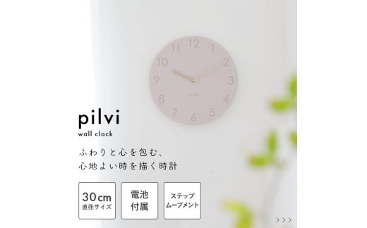 壁掛け時計 pilvi ピルヴィ ピンクベージュ pelata [ペラタ] 時計 北欧 おしゃれ シンプル アナログ ステップムーブメント インテリア時計 リビング 寝室 新築祝い 掛時計 ウォールクロック 結婚祝い プレゼント 贈り物 ギフト ピンクベージュ アイボリー|a80pilvi|D102