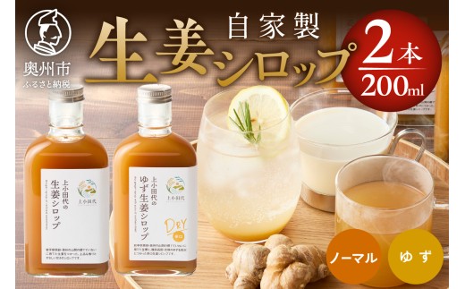 生姜シロップ ゆず生姜シロップDRY 200ml 2本 無農薬栽培 添加物不使用 自家製生姜 てんさい糖 常温 岩手県奥州市江刺産 [T0021]