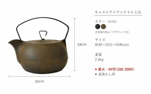 - 鉄分補給に最適 南部鉄器 キャストアイアンケトル1.2L ブラウン【直火対応】【IH200V対応】