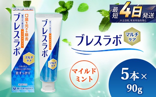 - ブレスラボ マルチケア マイルドミント 90g 5本セット | 歯磨き粉 歯磨き ハミガキ デンタルケア フッ素 虫歯予防 口臭予防 歯周病予防 日本製