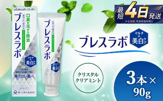 - ブレスラボ マルチ+美白ケア クリスタルクリアミント 90g 3本セット | 歯磨き粉 歯磨き ハミガキ デンタルケア フッ素 虫歯予防 口臭予防 歯周病予防 日本製