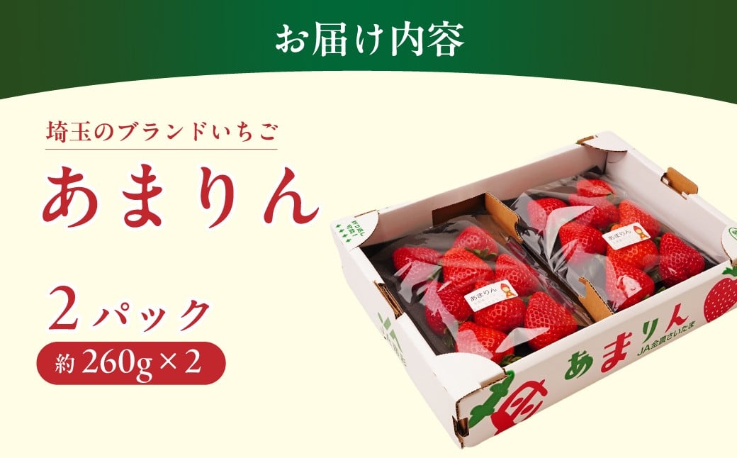 - いちご あまりん 全国いちご選手権 入賞 2年連続 260g×2パック 2026年 | いちご 人気 贈答 平詰め ストロベリー 季節限定 高評価 果物 くだもの フルーツ 野菜 美味しい おいしい 甘み ほのかな酸味 デザート スイーツ ギフト 贈り物 ビタミン 健康 埼玉県 久喜市