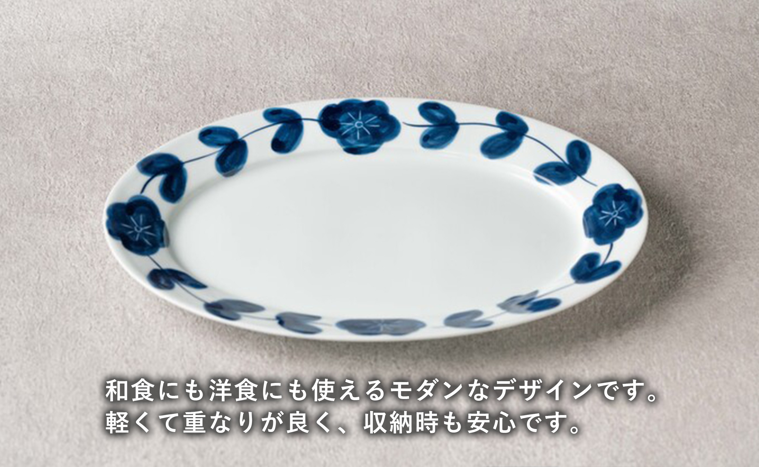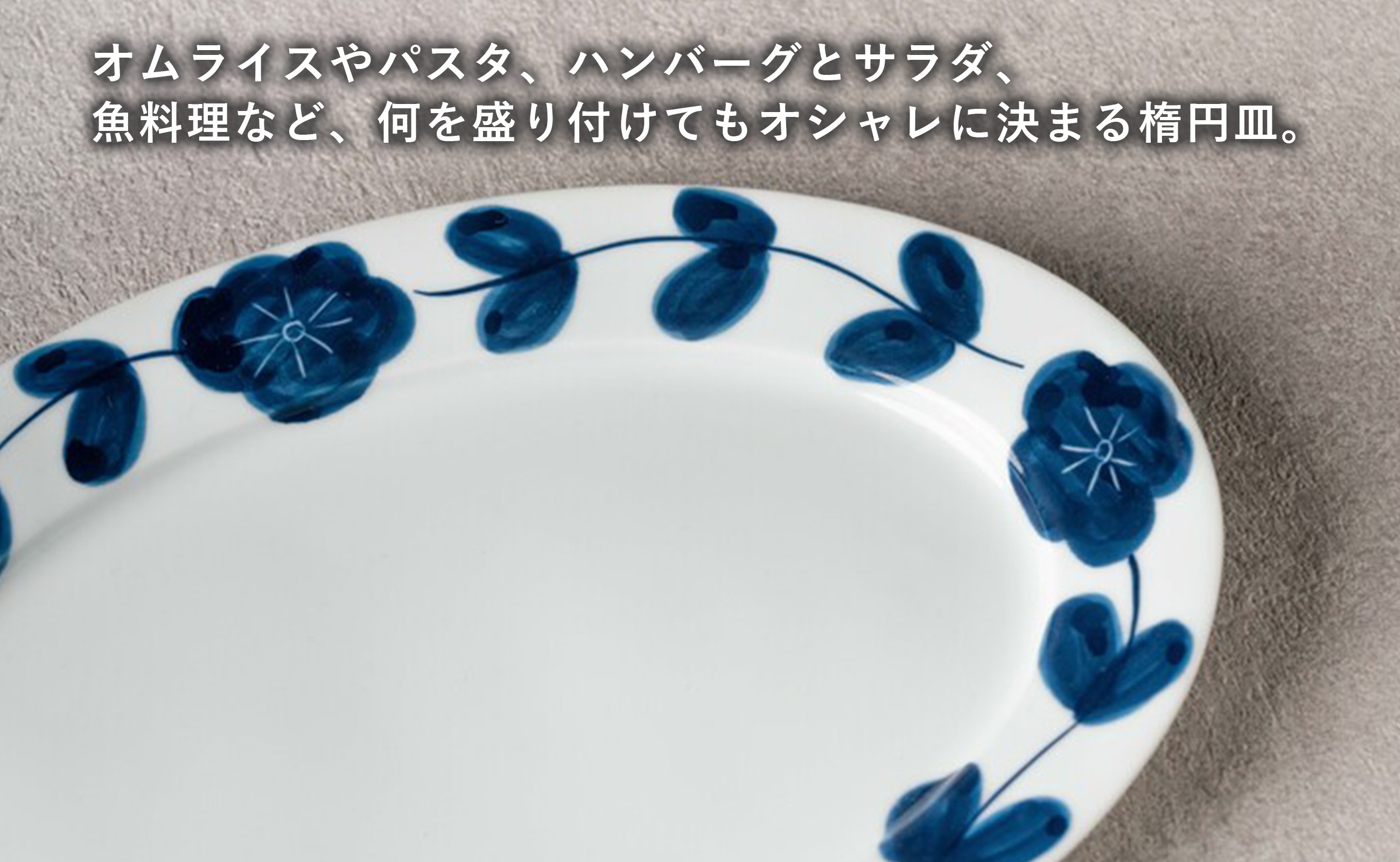 【カネアオ】有田焼 リム楕円皿(大)2枚セット (花つなぎ) オーバル皿 皓洋窯
