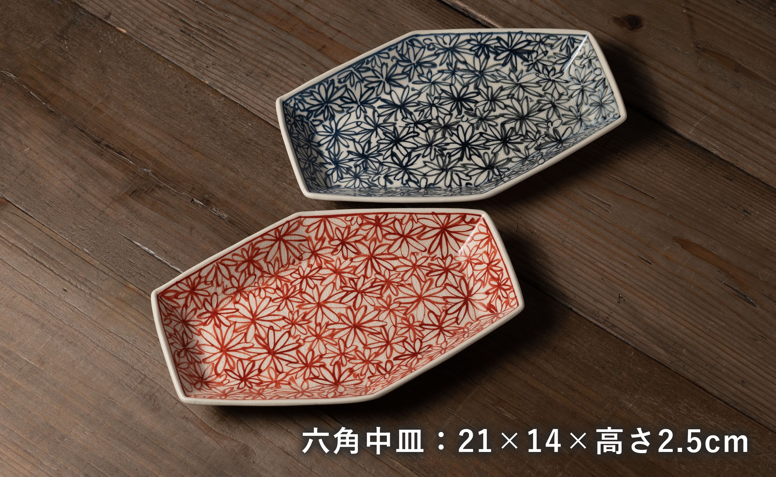 - 【セット】 有田焼 手描き 染付 花詰 10点フルセット (平小鉢・八角浅鉢・八角取り皿・六角中皿・茶碗) 喜鶴製陶