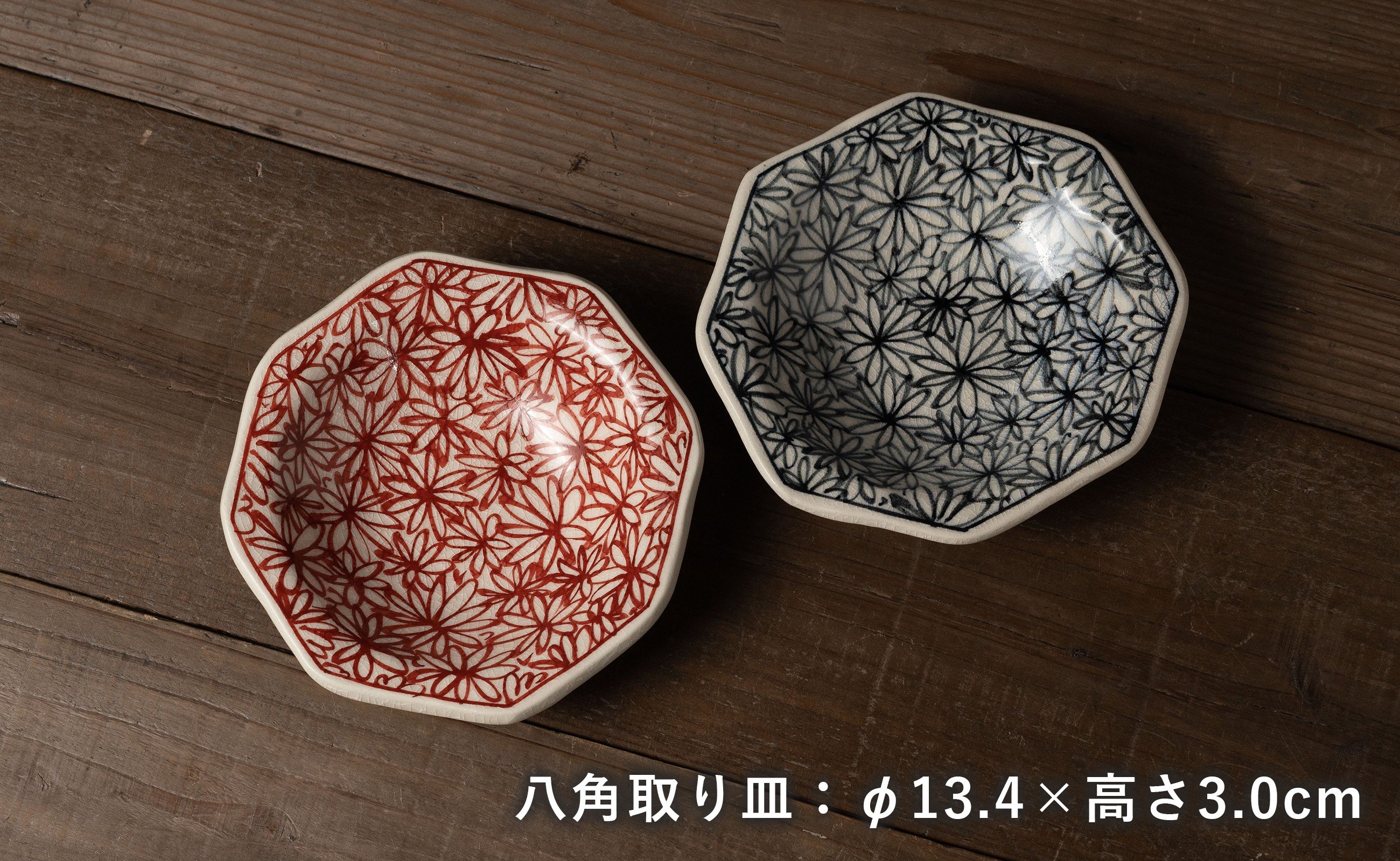 【セット】 有田焼 手描き 染付 花詰 10点フルセット (平小鉢・八角浅鉢・八角取り皿・六角中皿・茶碗) 喜鶴製陶