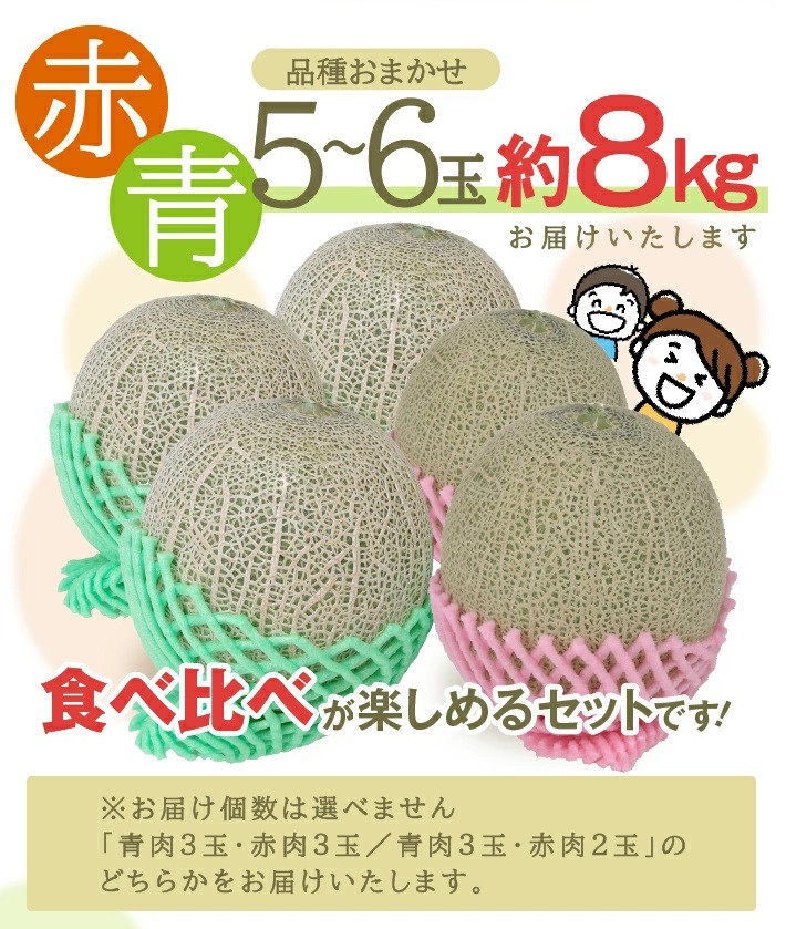 - 特選 庄内産 赤肉・青肉メロンミックス 約8kg(大玉 5~6玉入) 品種おまかせ SC0677