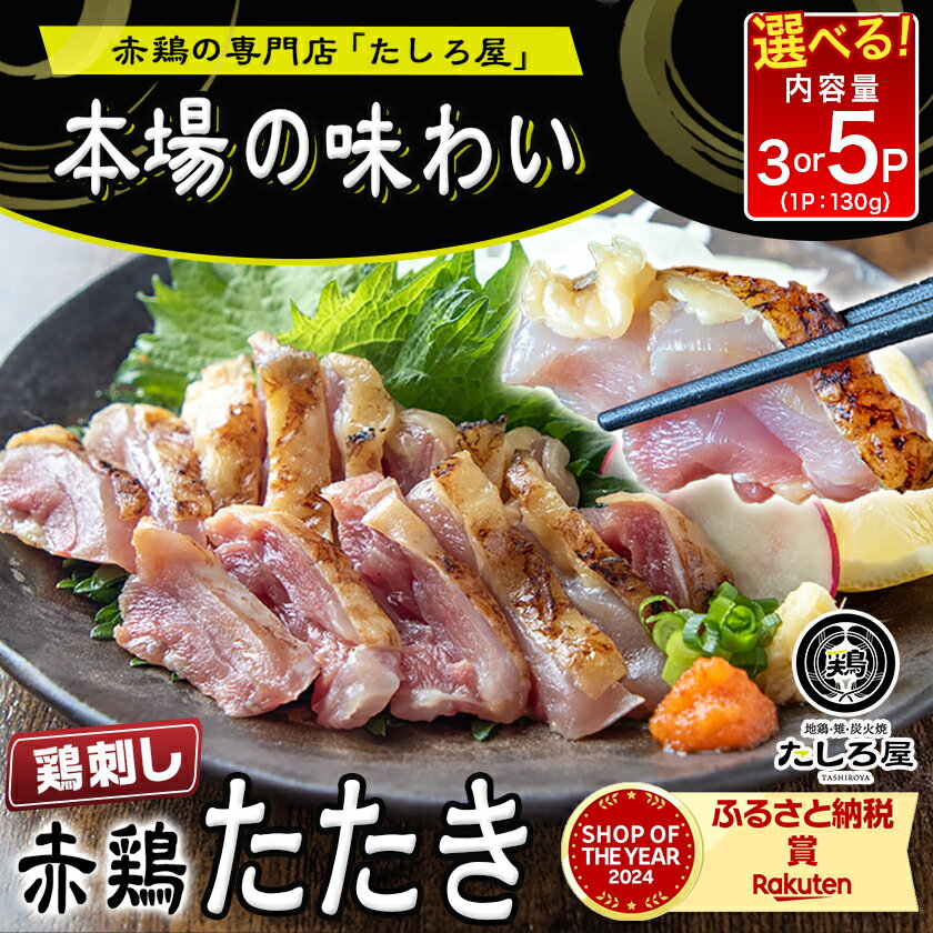 【ふるさと納税】【内容量が選べる!】【たしろ屋】赤鶏たたき - 国産赤鶏 鶏刺し たたき 真空パック おつまみ 晩酌 選べる内容量 部位のバランスはお任せ オリジナルタレ付き 130g×3P/130g×5P 送料無料 SKU-9902【宮崎県都城市は2年連続ふるさと納税日本一!】