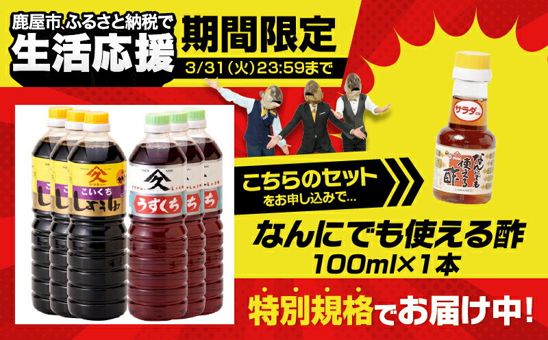 【ふるさと納税】【創業享保20年の老舗醤油屋】丁子屋のかごしま調味料 詰め合わせ (4種) 贈答用 調味料 濃口醤油 めんつゆ なごみ酢 ぽん酢 鹿児島 甘口醤油 つゆ ポン酢 南さつま市 ギフト 手土産 送料無料 【2019年度ふるさと納税寄附額鹿児島県1位!南さつま市】