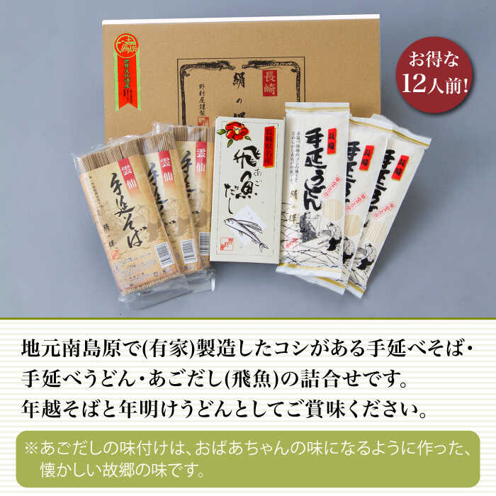 長崎 手延べ 年越そば 年明うどん あごだし付 / そば ソバ 蕎麦 そば ソバ ソバ 麺 乾麺 うどん ウドン 饂飩 あごだし / 南島原市 / 野村屋 [SCS003]