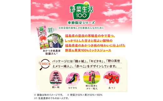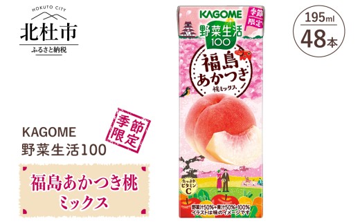 カゴメ 野菜生活100 福島あかつき桃ミックス195ml 紙パック 48本入 野菜ジュース 季節限定 フルーツmix 砂糖不使用 野菜・果実100% 飲料 健康志向 健康食品