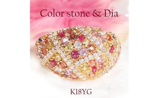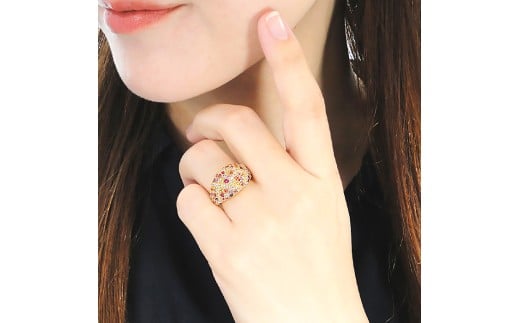 指輪 リング K18YG イエローゴールド ダイヤモンド 0.3ct パヴェ マルチカラー 赤系 レディース ゴージャス ボリューム 幅広 18金 贅沢 Pave ステンドグラス ジュエリー 【f295-r-k18yg】※11.5号 ALPAZ190-11_5