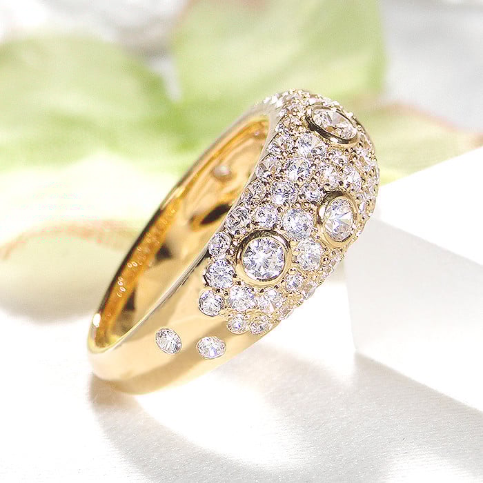 - 140-9-2 指輪 K18YG イエローゴールド レディース リング 1.6ct ダイヤモンド パヴェ ドット ダイヤ【f155-k18yg】 ALPAZ090
