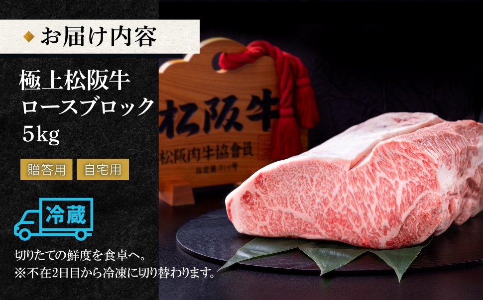 - 極上 松阪牛 ロース ブロック 5kg < 冷蔵 > 牛追道中 肉 牛 牛肉 和牛 ブランド牛 高級 国産 霜降り 自由にカット 自宅 パーティー US5