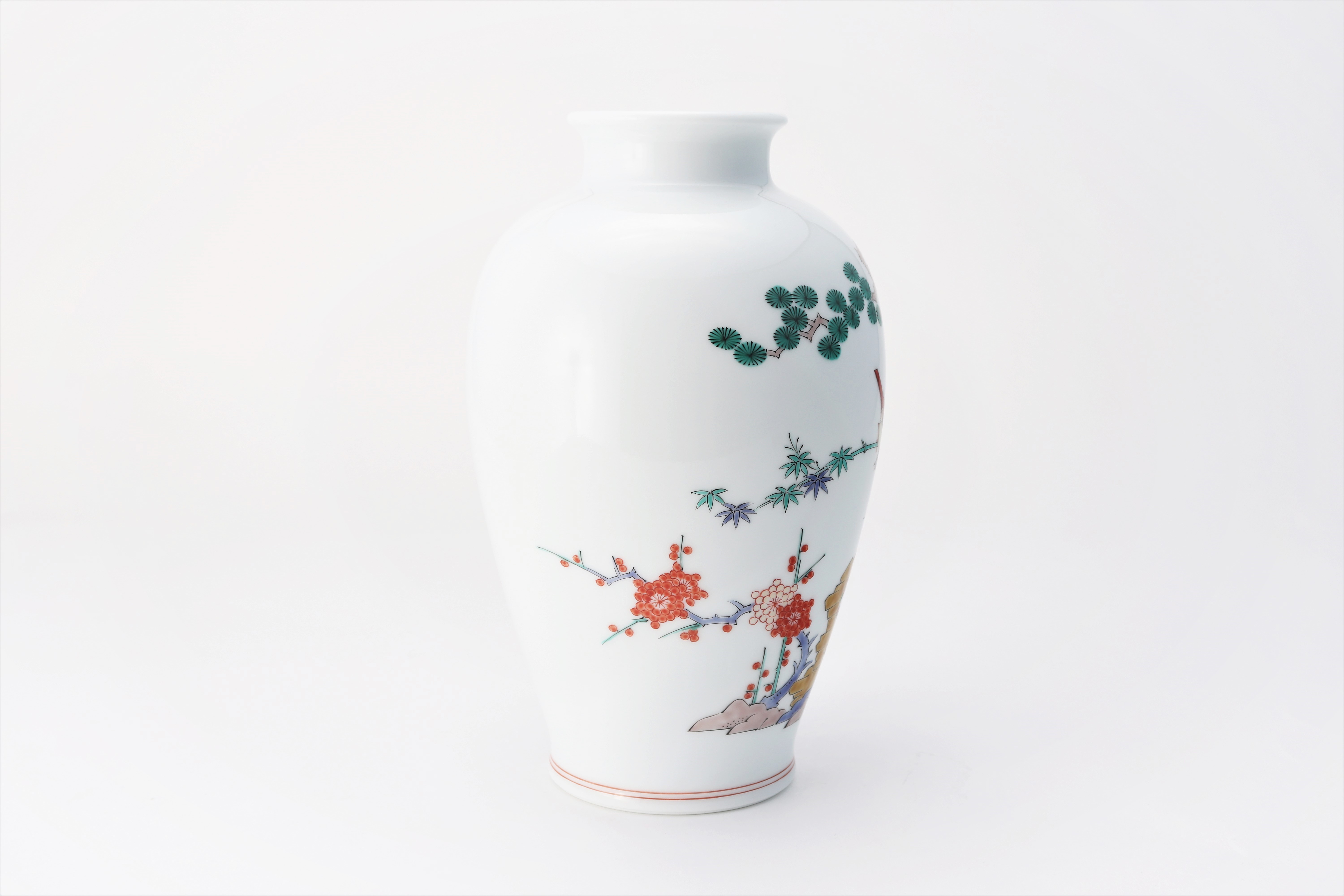 花瓶7寸松竹梅鳥文【柿右衛門】