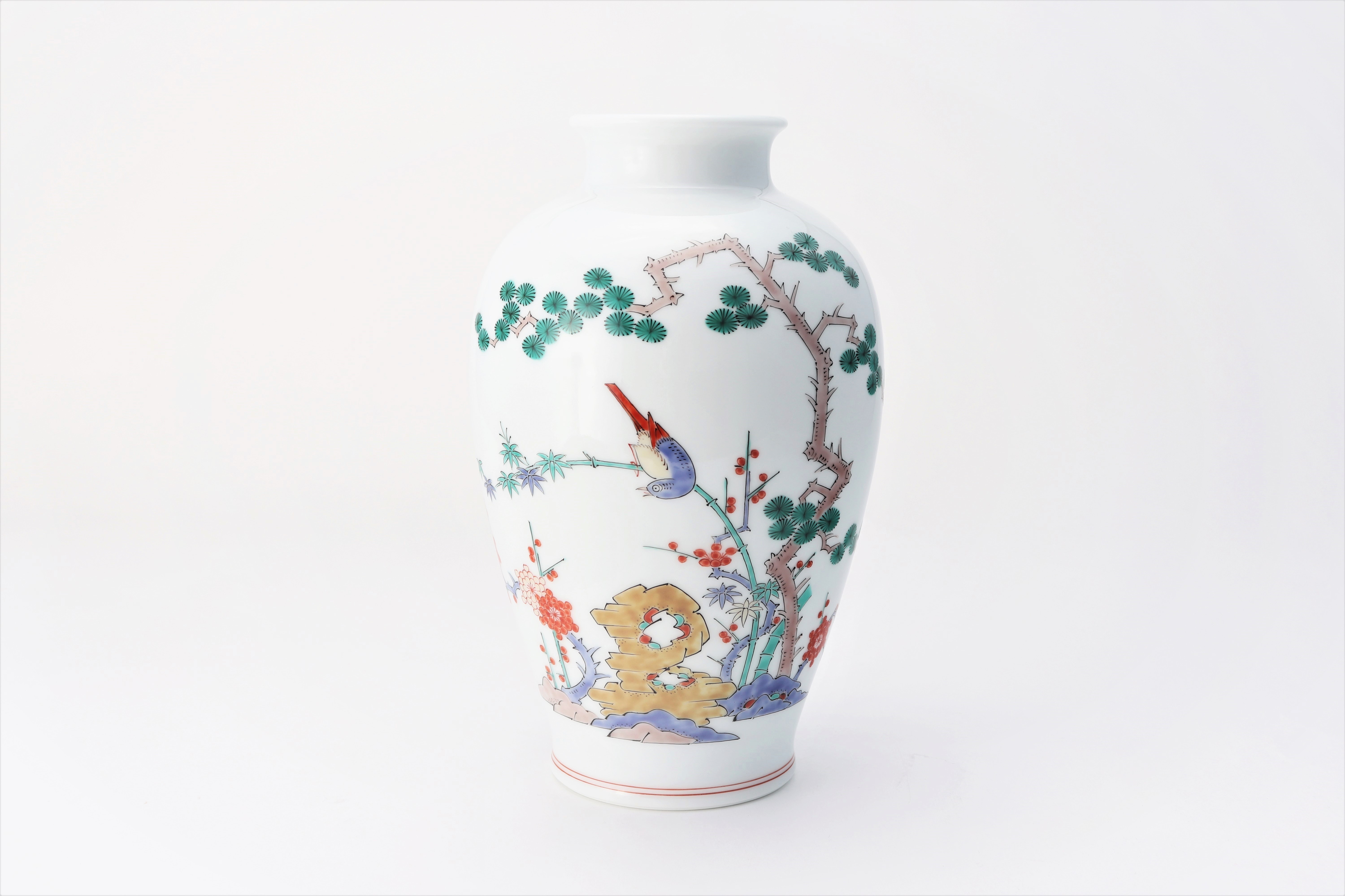 - 花瓶7寸松竹梅鳥文【柿右衛門】