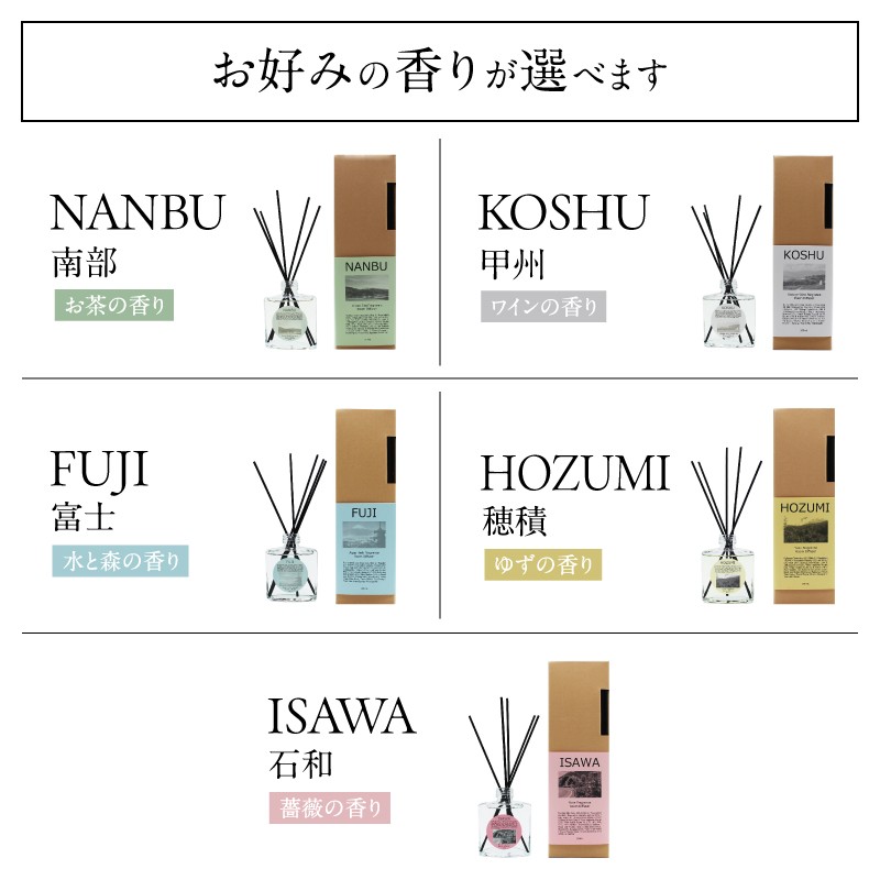 - 【選べる香り】Region Seriesディフューザー【南部(お茶)/甲州(ワイン)/富士(水と森)/穂積(ゆず)/石和(薔薇)】(GV)
