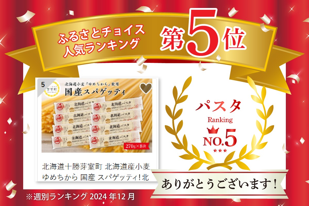 - 【選べる容量】北海道 十勝 芽室町 北海道パスタ 国産 北海道産小麦「ゆめちから」スパゲッティ 1袋270g × 8袋 16袋 20袋 3回定期便:毎月 / 隔月 me026-013-oya /キャンプ飯 ソロキャン アウトドア もちもち 常温保存 長期保存 保存食 乾麺 備蓄 食材 惣菜 国産