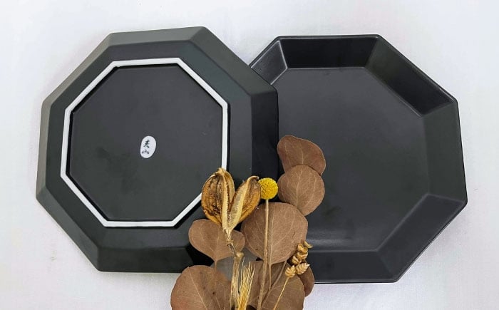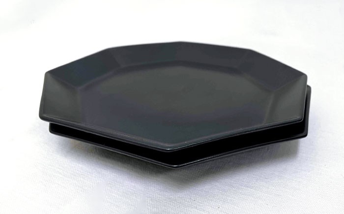 - 【瀬戸焼】 八角メイン皿 ペア マットブラック 【まるたか水野コーポレーション】 / 食器 皿 プレート 陶器 / 瀬戸市 [BBBF027]