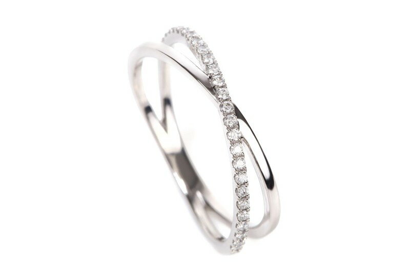 【ふるさと納税】< 甲府ジュエリー > リング 指輪 ジュエリー アクセサリー レディース ダイヤモンド 約0.12ct 天然 プラチナ Pt900 Pt 独自配合 強硬度 ハーフエタニティ クロスリング シャープ ライン ギフト プレゼント ジュエリーケース付 鑑別書付 保証書付 k358-024