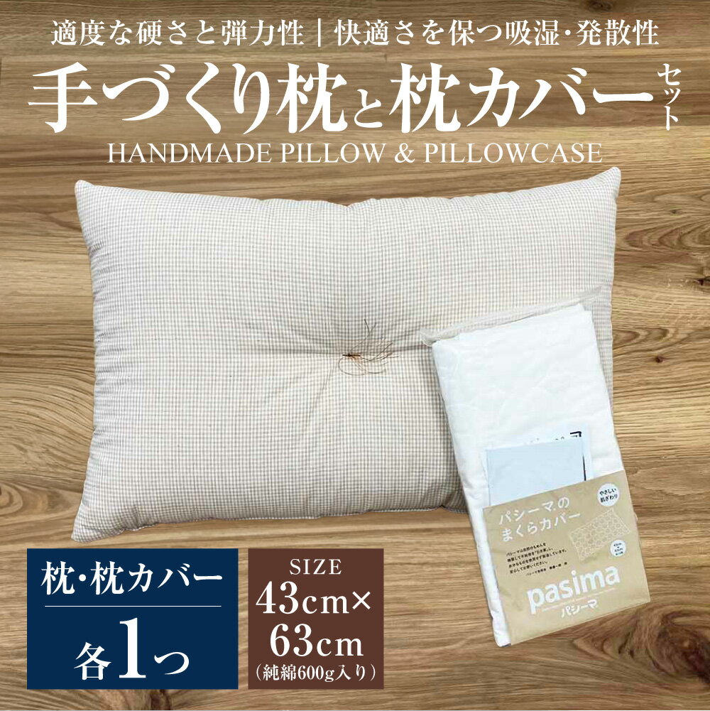 【ふるさと納税】手づくり 枕と枕カバーセット | まくら 枕 枕カバー セット 寝具 綿 わた 洗濯不可 オーガニックコットン 43cm×63cm カバー 茨城県 守谷市 送料無料