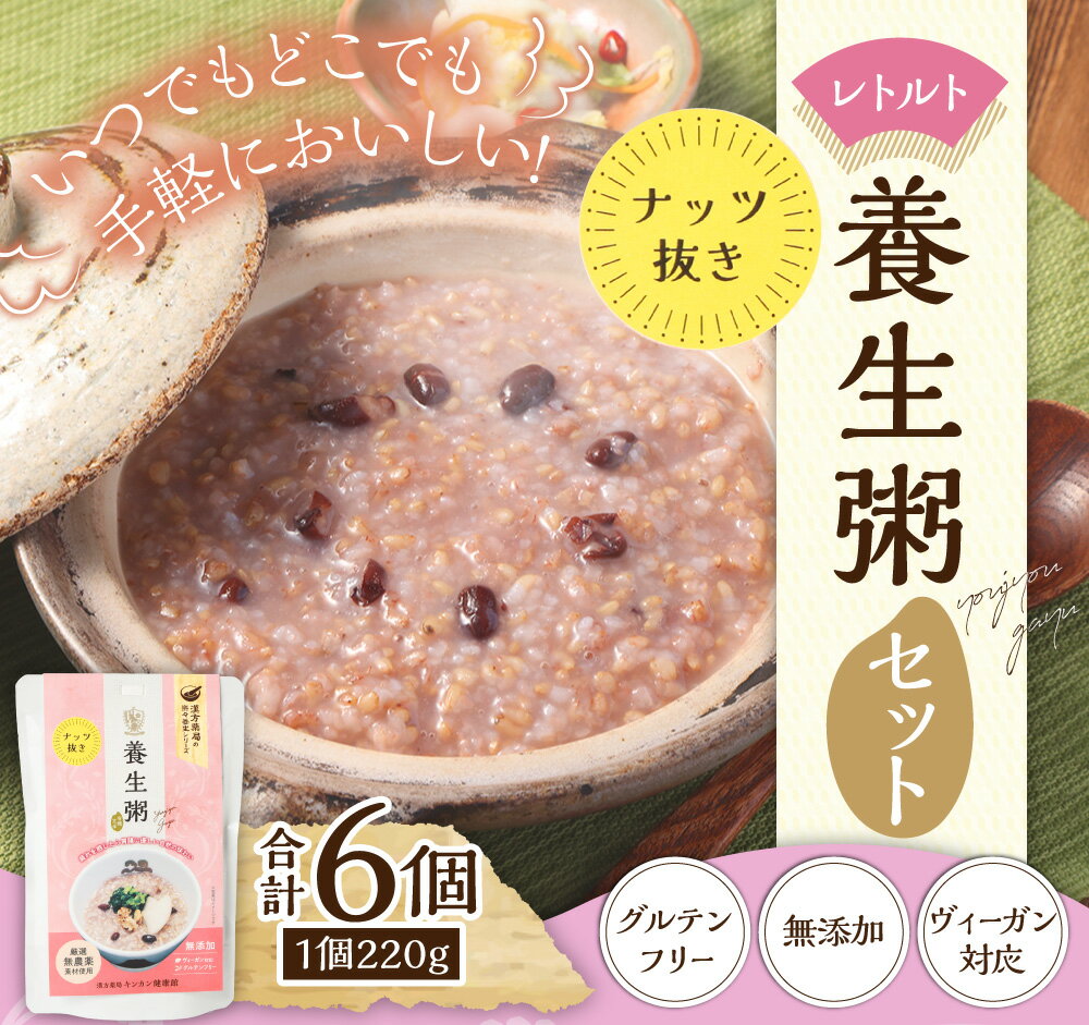 【ふるさと納税】レトルト養生粥(ナッツ抜き)セット 計1.32kg(220g×6個) 有機玄米 お粥 おかゆ 無添加 グルテンフリー ヴィーガン対応 レトルト食品 保存食 長崎県 長崎市 送料無料