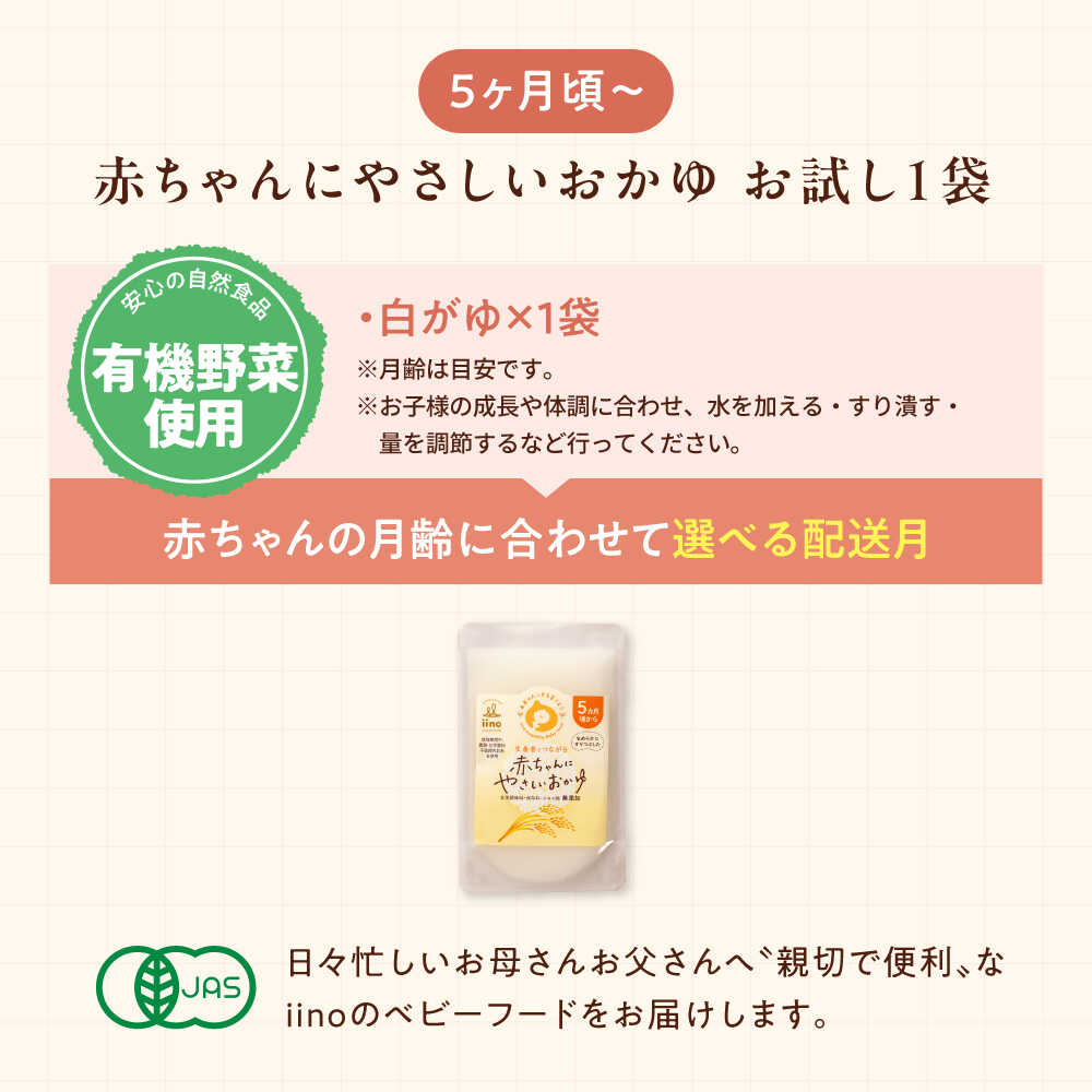 - 【ふるさと納税】【お試し1袋】5ヶ月頃からの『赤ちゃんにやさしいおかゆ』(白がゆ)1袋 愛媛県大洲市/iino assemble[AGAA018] あかちゃん ベビーフード 赤ちゃん用品 お食い初め セット 国産 おすすめ 人気 3000円 三千円
