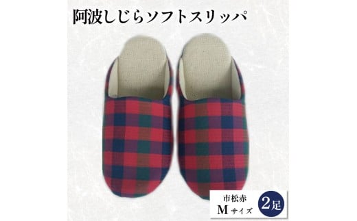 スリッパ 阿波しじら ソフトスリッパ (市松赤) Mサイズ 2足組 セット 部屋履き ルームシューズ オフィス トイレ 雑貨 日用 リビング キッチン インテリア 伝統産業 特産品 雑貨 ギフト プレゼント 贈答 送料無料 徳島県 吉野川市