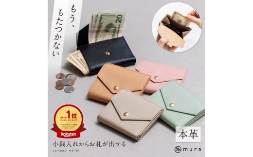 - ブラック \財布ジャンル1位&高評価★4.91/ MURA 本革 ミニ財布 レディース 二つ折り財布 シュリンクレザー スリム 薄型 薄マチ コンパクト スリム財布 高見え 上質 可愛い シンプル 機能的 プレゼント キャッシュレス 公式 バッグ 20000円 2万円 岐阜県 大垣市